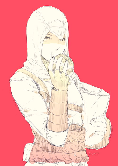 続きについったーの洋ゲーワンドロで描いたアルタイルと先輩のらくがきおいときます・・・一時間で全然絵描けないです_(:3」∠)_