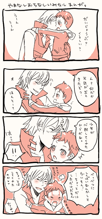 下のこしゅら妄想の漫画みたいな感じです。デレツンこしゅらが描きたくて描いたらおっさんがデレデレしている方が目立つっていうでっていう。こしゅら「ほんとにちょっとだけなんだから!」ダンテ「ちょっとってどれくらいだ?」「えっ、ちょっと…ちょっと…ちっちゃいハムスターくらい!」「ハムスターwwwwwwwwww」