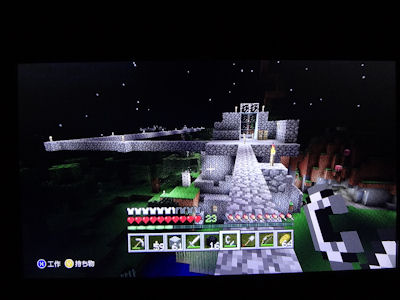 1日目、10時間、2日8時間、連続マイクラしてたら、二日目今朝寝るとき頭痛と吐き気でやばかった。今城(っぽいなにか)作ってる。