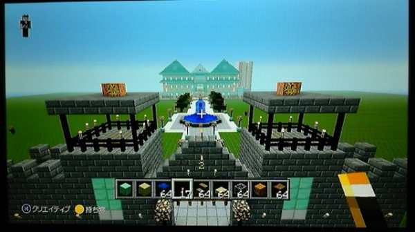 箱○、クリエイティブ、フラット、ピース、飛行ありで城製作途中。二日目最後に取った写真。