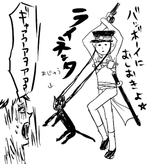 あと、ライネッタまじめに描いたら超エロくなりそうですね。だって裸にふんどしにブラに純白の靴下に革靴とか。